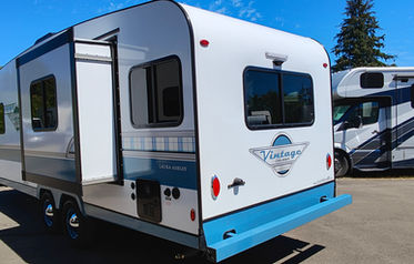 2024 Gulf Stream Vintage Cruiser 19CSK Turquoise Edition is a retro-inspired lightweight travel trailer that combines classic styling with practical modern features. Built on a six-sided welded aluminum frame with vacuum-bonded sidewalls and a one-piece fiberglass roof, it measures about 23′1″ long and 7′6″ wide, with a dry weight around 3,440 lbs—making it towable by many SUVs and trucks...LEARN MORE>